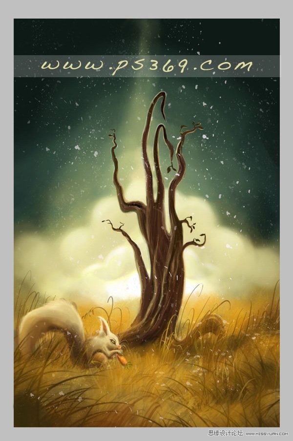 风景画不仅要有华丽的视觉,更要有意境。要善于把自己的情感融入画面。在构图的时候要善于用细节来表现自己的情感。这样画出的作品才耐看。 最终效果 |