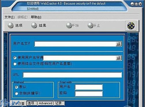 (2)下载WebCrack并安装。运行后首先点击“用户名文件”处的浏览按钮,创建文件。然后我们再去找些配套的字典文件,字典里是用转用软件生的各种不同的用户名和密码供软件一对对去匹配,例如admin、123456等常见的用户名,当然字典里面的数据越多,破解的概率就越大,密码输入格式为一行一个。回到WebCrack界面中,勾寻使用用户名字典”选项,并浏览选中刚才创建的文本文档。接着在“URL”中填入路由器的登录地址,设置完毕后,我们点击“开始”按钮进行探测。