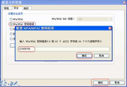 (7)无线网卡客户端的安全要和接入点一样设置;