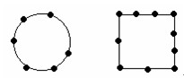 为使其更直观,我们用图示法来说明。树用点来表示,植树的路线用线来表示,这样就把植树问题转化为一条非封闭或封闭的线上的“点数”与相邻两点间的线的段数之间的关系问题。