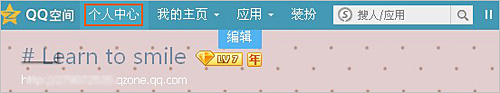 1、进入好友空间后,把您自己的空间重新打开一次,主页左上角点击个人中心;