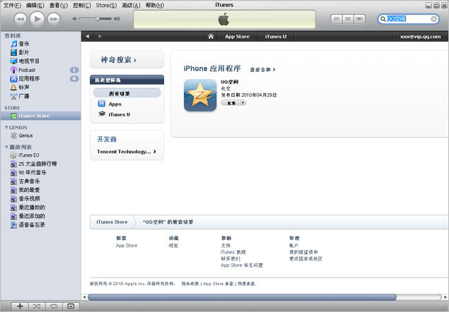4、完成下载后,打开iPhone同步选项中的应用程序内容,在QQ空间图标前打勾,点击右下"同步"按钮,完成后您的iPhone桌面上就 会出现QQ的启动图标,表明安装成功。如图: