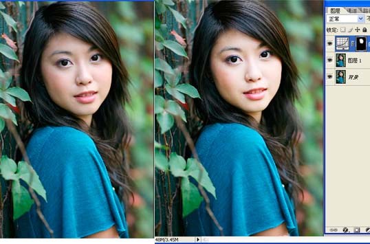 下面再举一个局部应用滤镜的例子,就拿topaz滤镜举例。Topaz滤镜是颇受非议的一个滤镜,网上好多人对“她”嗤之以鼻,我在这里用这个“她”就是表示对它的喜爱,在磨皮时我基本上每次都用,正所谓“没有不好的滤镜,只有用不好滤镜的人”,跑题了…… 用好topaz的关键是不能看出应用痕迹,那我们就用蒙版把不想显示的部分隐藏起来不就行了吗。 |