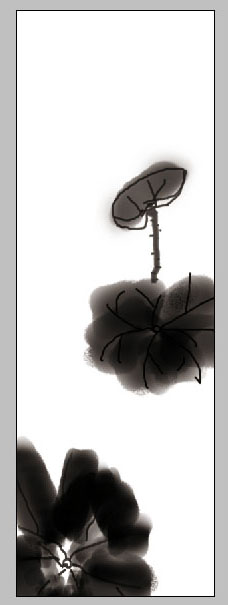 3、现在开始画了,尺寸、布局可以事先在纸上画一下,也可以找幅国画借鉴下。 调节画笔的大小、透明度画出荷花的叶子。 |