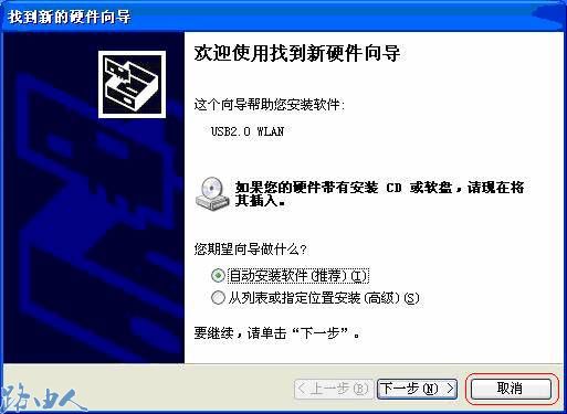 (4)当网卡接上电脑以后,系统会自动弹出硬件安装向导来安装网卡驱动;