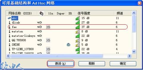 (2)点击扫描后,找到自己要连接的无线信号的SSID(信号的名称),然后点击激活;