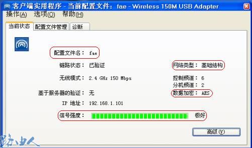 (7)无线网卡客户端的安全要和接入点一样设置;