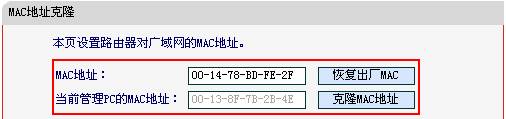 部分ISP会在给用户安装宽带服务时绑定用户的电脑网卡的物理地址(即MAC地址),只有被绑定的电脑才能通过PPPOE拨号上网,其他电脑或路由器都无法拨号,在路由器上,这个问题的解决办法是:用单机可以拨号上网的电脑管理路由器,进入路由器管理界面――网络参数―MAC地址克隆,将被绑定的电脑(单机可拨号的电脑)的网卡的MAC克隆到路由器上即可。
