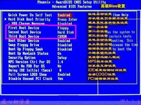 1 三种BIOS设置光驱第一启动的图解