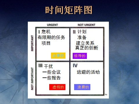 四类:可以完全不做,但已经花时间去做了,例如午饭后喝茶聊天、跟同事联络工作之际闲聊,抽空走神上网浏览网页,内容大致有娱乐八卦新闻等