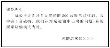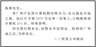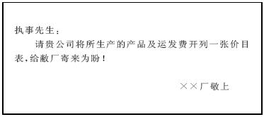 即订购产品信,其基本格式为: