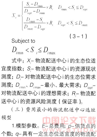 基于生态位适宜度的物流配送中心选址模型