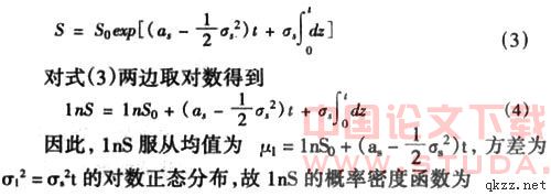 假设商业地产租赁价格遵循:dS=asSdt+σsSdz (2)