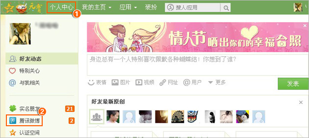 1、登录QQ空间“点击个人中心”“腾讯微博”“微博设置”“其它设置”中增加同步设置项:
