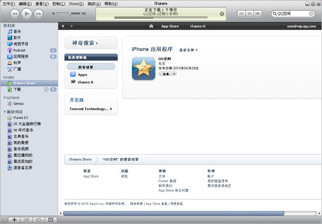 4、完成下载后,打开iPhone同步选项中的应用程序内容,在QQ空间图标前打勾,点击右下"同步"按钮,完成后您的iPhone桌面上就 会出现QQ的启动图标,表明安装成功。如图: